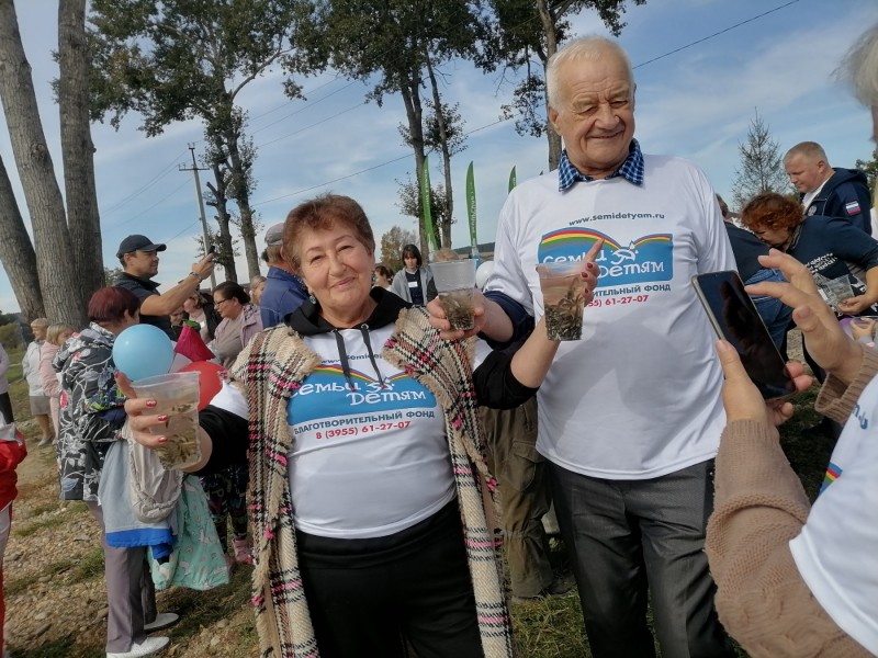 После торжественной части гости и организаторы выпустили мальков. Всех проинструктировали как правильно выпускать рыбу.