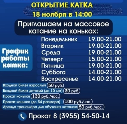18 ноября в 14:00 СШ «Ермак» приглашает на открытие катка для массового катания!