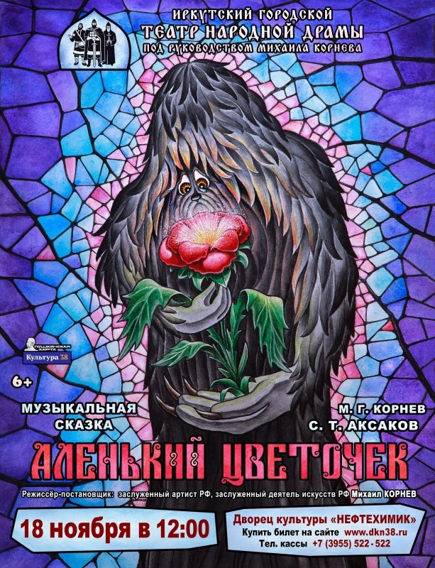 Гастроли иркутского театра народной драмы в Ангарске! 18 ноября в 12:00 маленьких зрителей приглашаем на музыкальную волшебную сказку "Аленький цветочек" о том, как любовь и преданность побеждают ненависть и злые чары.
