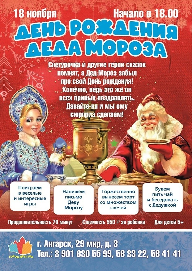 "Город Детства" приглашает ребятишек отпраздновать День рождения Деда Мороза 18 ноября в 18:00