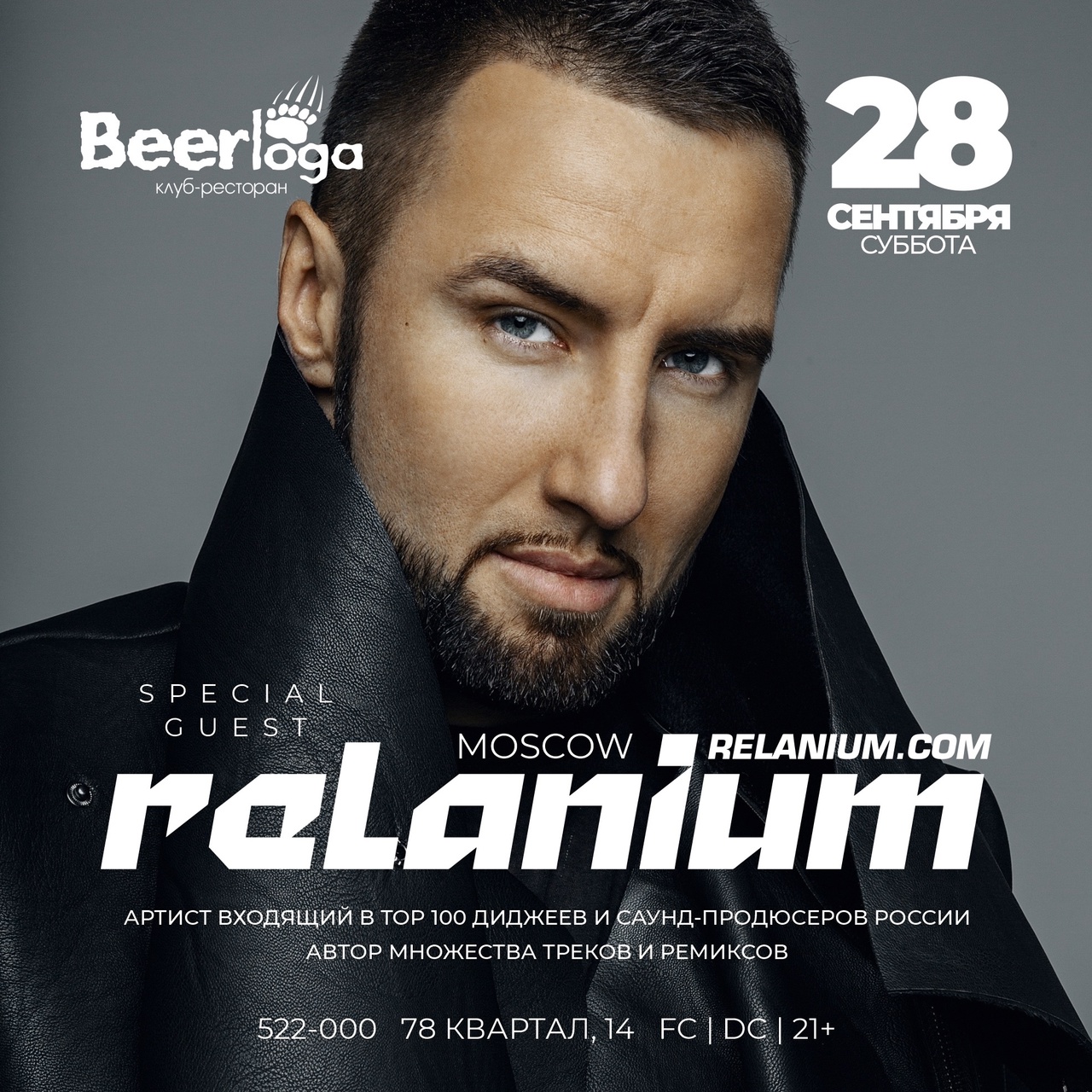 В субботу, 28.09 за пульт "Берлога" встанет настоящий мастер — RELANIUM из Москвы! ⠀