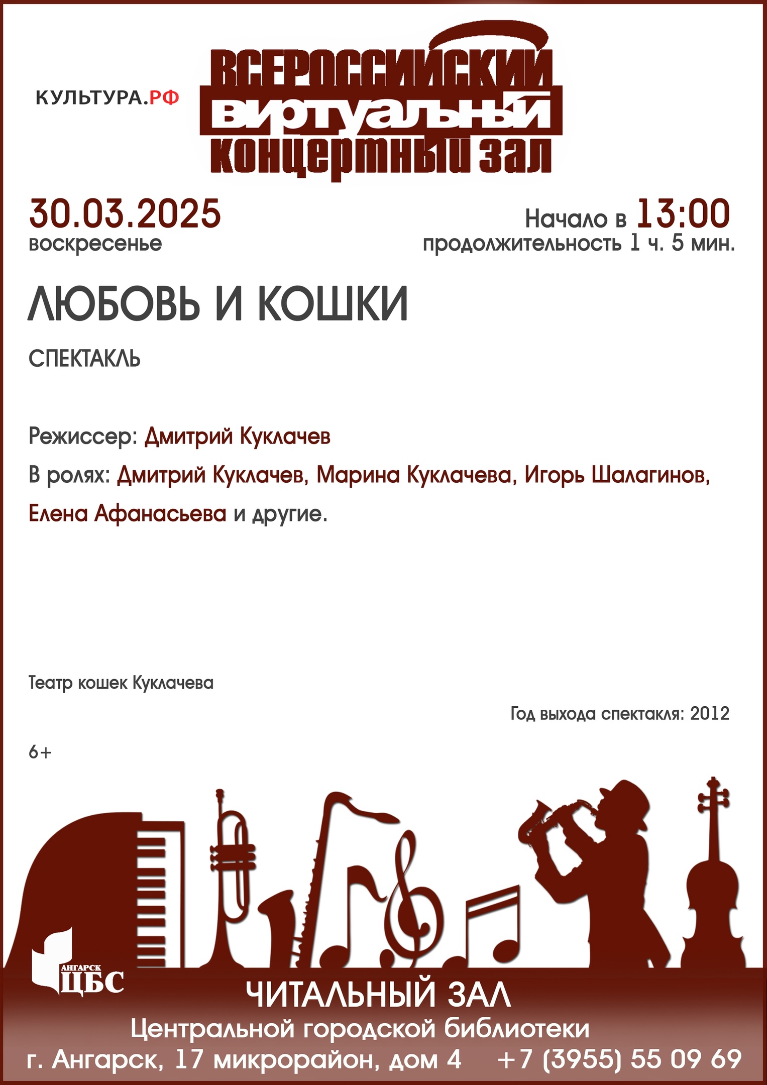 С афишами видеотрансляций в Виртуальном концертном зале можно познакомиться на сайте https://cbs-angarsk.ru/sobytia/1