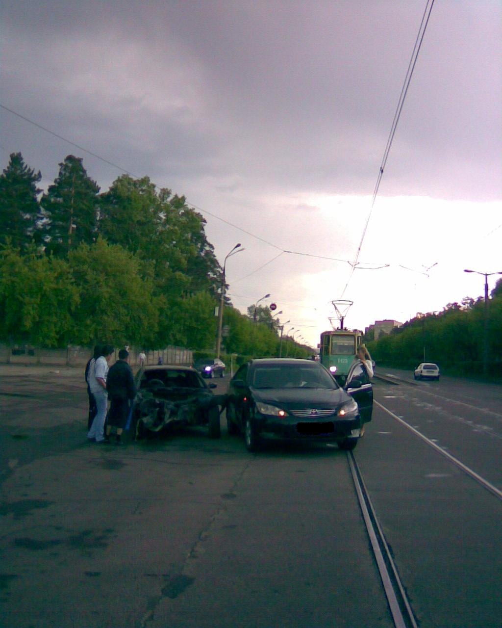 Нет,верёвка была оборвана на передке сгоревшей машины.Может таблетка резко тронулась и порвала верёвку,скорее всего так и было,а "лохматина" выкатилась на перекрёсток там и встретились с Тойотой,видно как она уходила от удара,но не успела,увы!!!