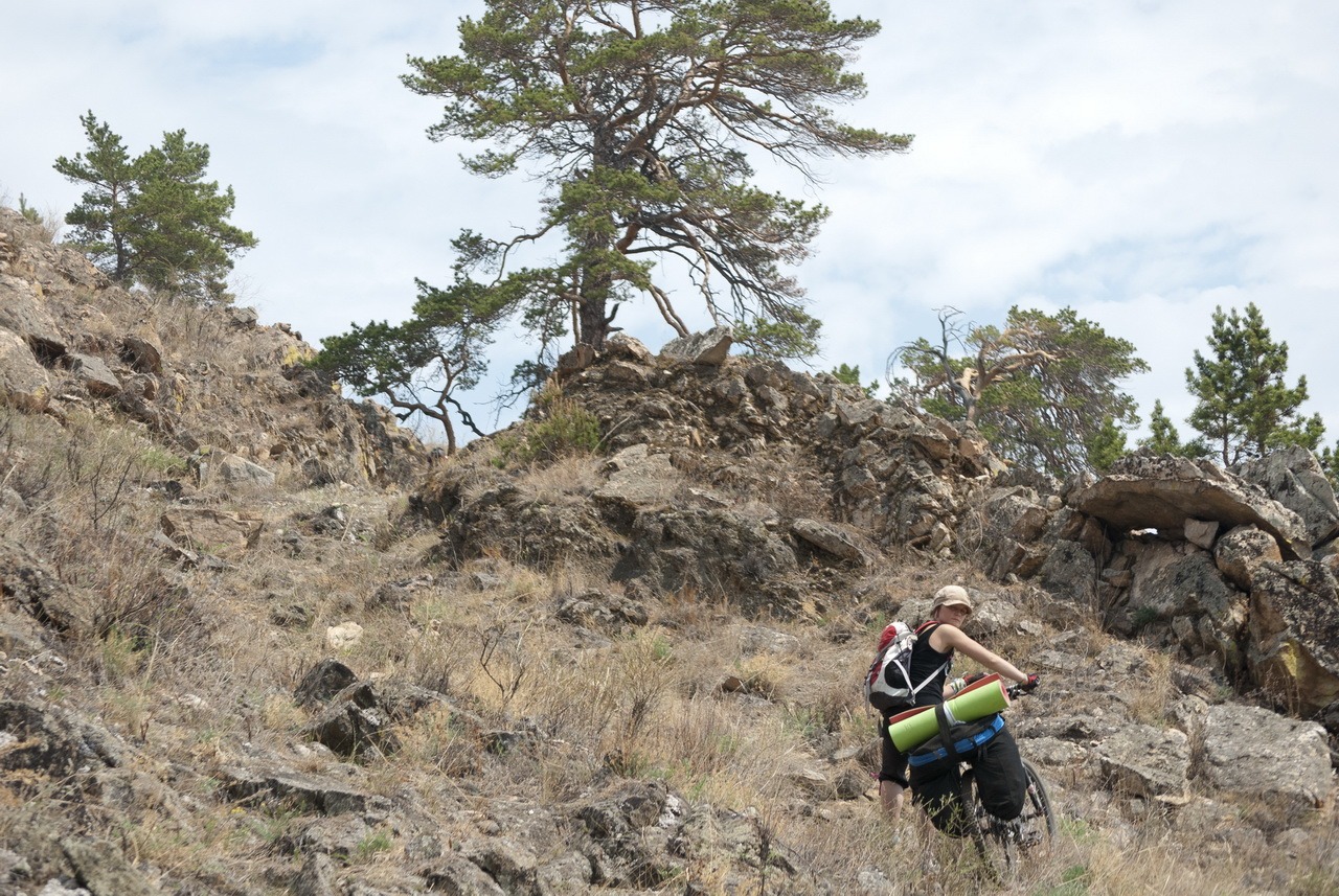 Вот за что я люблю велопоходы, что если понесет тебя черт горный, то можно вел на себе тащить. А вот мотобайк так тащить гораздо тяжелее ))