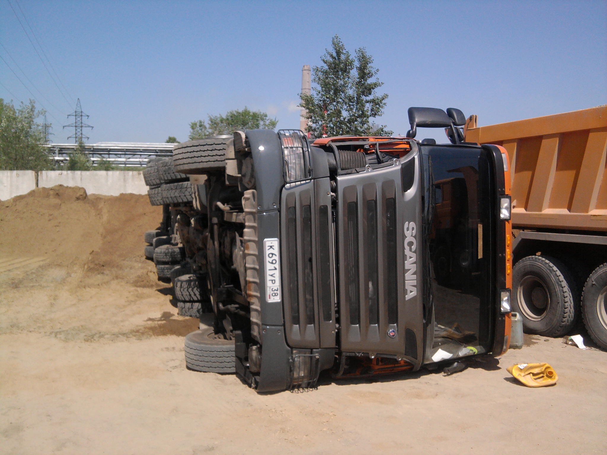 14.07 Пром площадка НПЗ, БРУ Разгружал 60 тонн песка и упал на бок