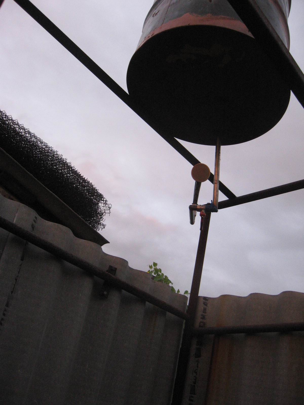 Емкость,если не ошибаюсь,200-литровая.Оригинальное решение!