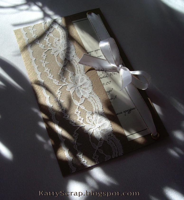 Дизайнерский крафт-картон с золотом, кружево, атласные ленты, люверсы