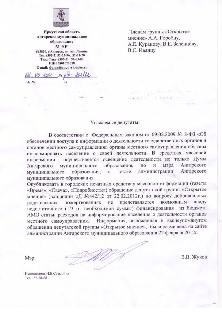 Что примечательно. Обратите внимание, на то, кто исполнил сей документ. Госпожа Сутырина, с заработной платой под 40 тысяч деревянных за недостоверные сведения о деятельности депутатов НеЖуковых.