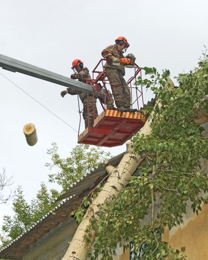 Чтобы убрать такое дерево, нужно 7 рабочих и 5 единиц техники