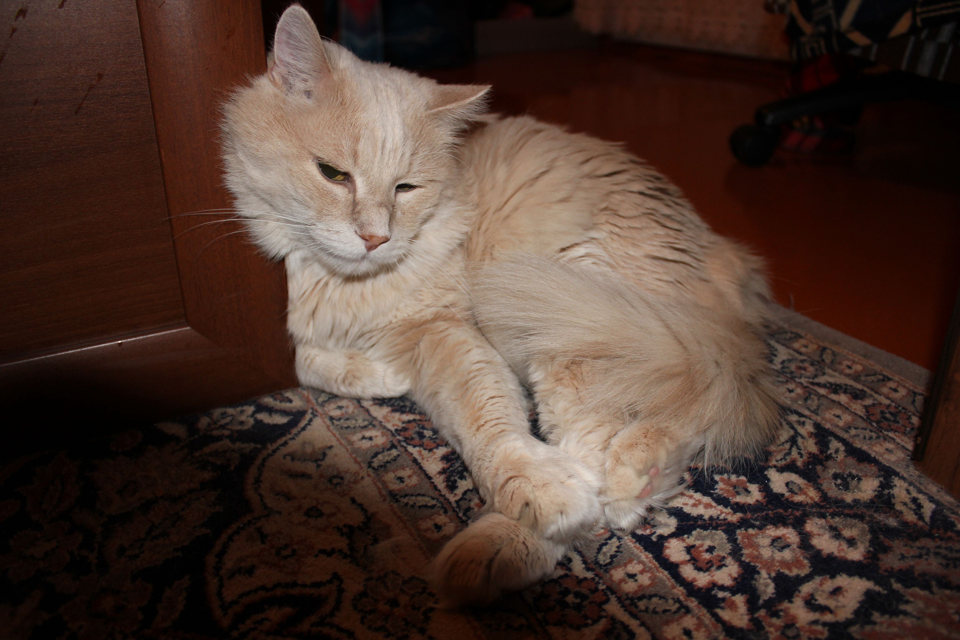 Элиночка,он любит посидеть у меня на коленках и позырить в монитор,но мешает по клаве стучать(носом старается помочь),по этому я его не пускаю когда печатаю,если что то читаю то зову,он тут как тут.