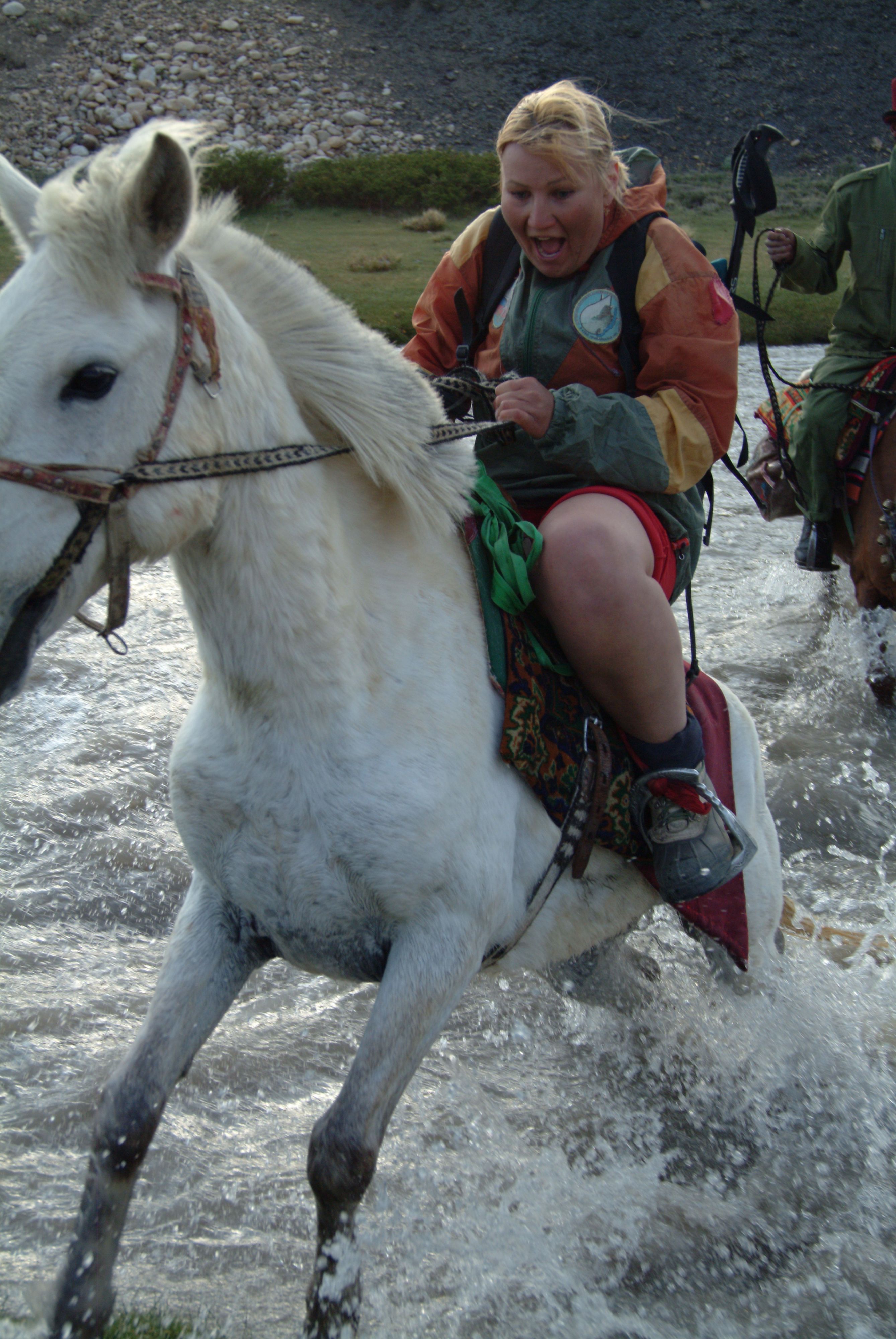 вперые в жизни на коне - и сразу через реку