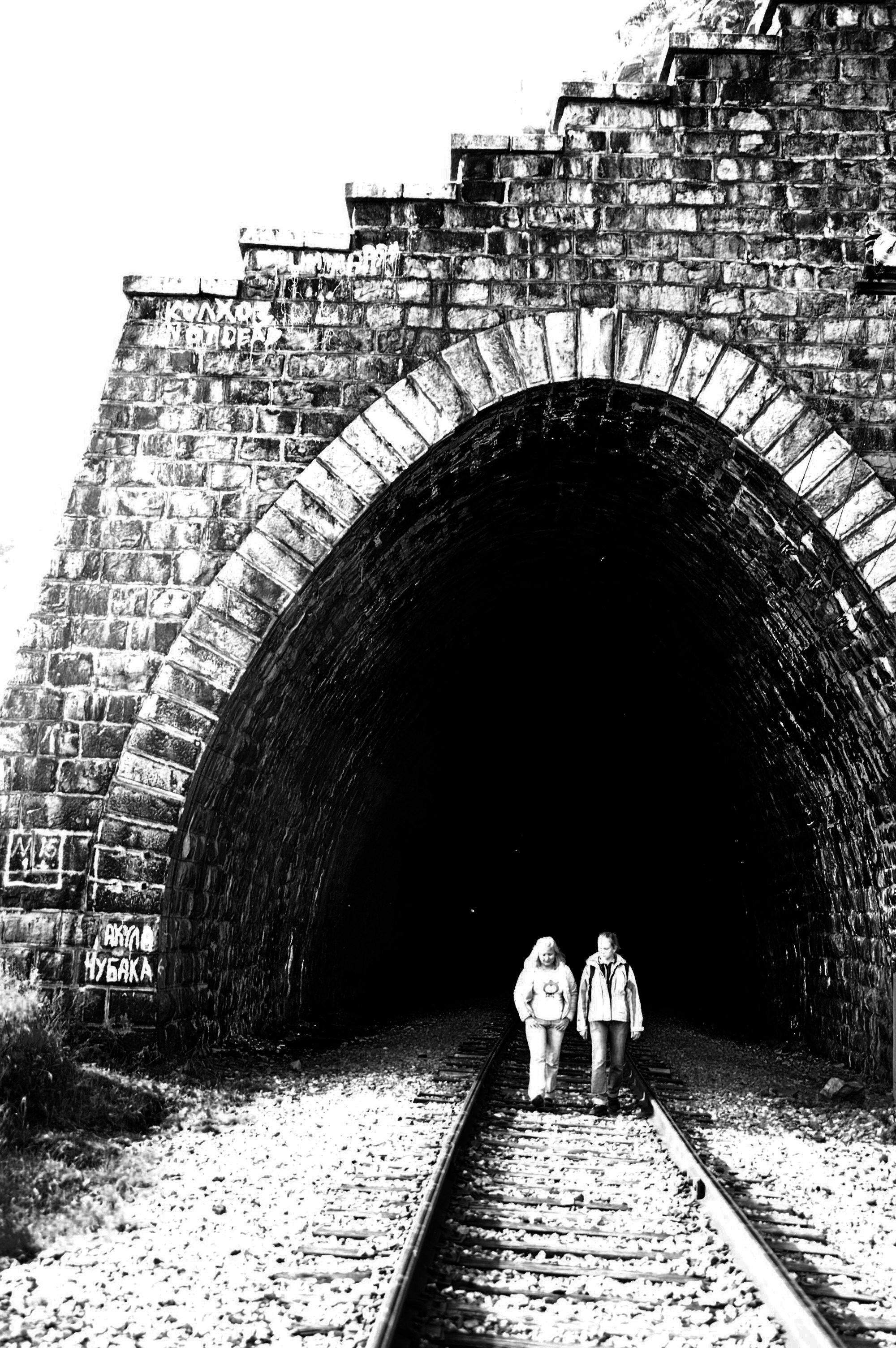 О ужас! Зев тоннеля страшный Двух юных путников исторг. У них в глазах застыл всегдашний Перед КБЖД восторг!