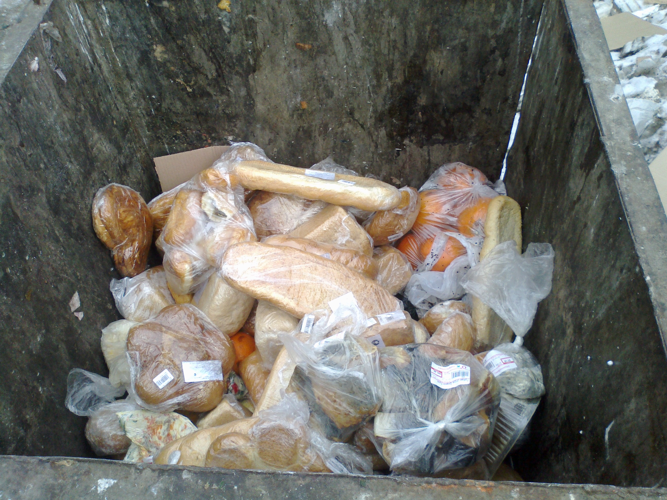 Хлеб в одном из мусорных контейнеров возле супермаркета в Солнечном.