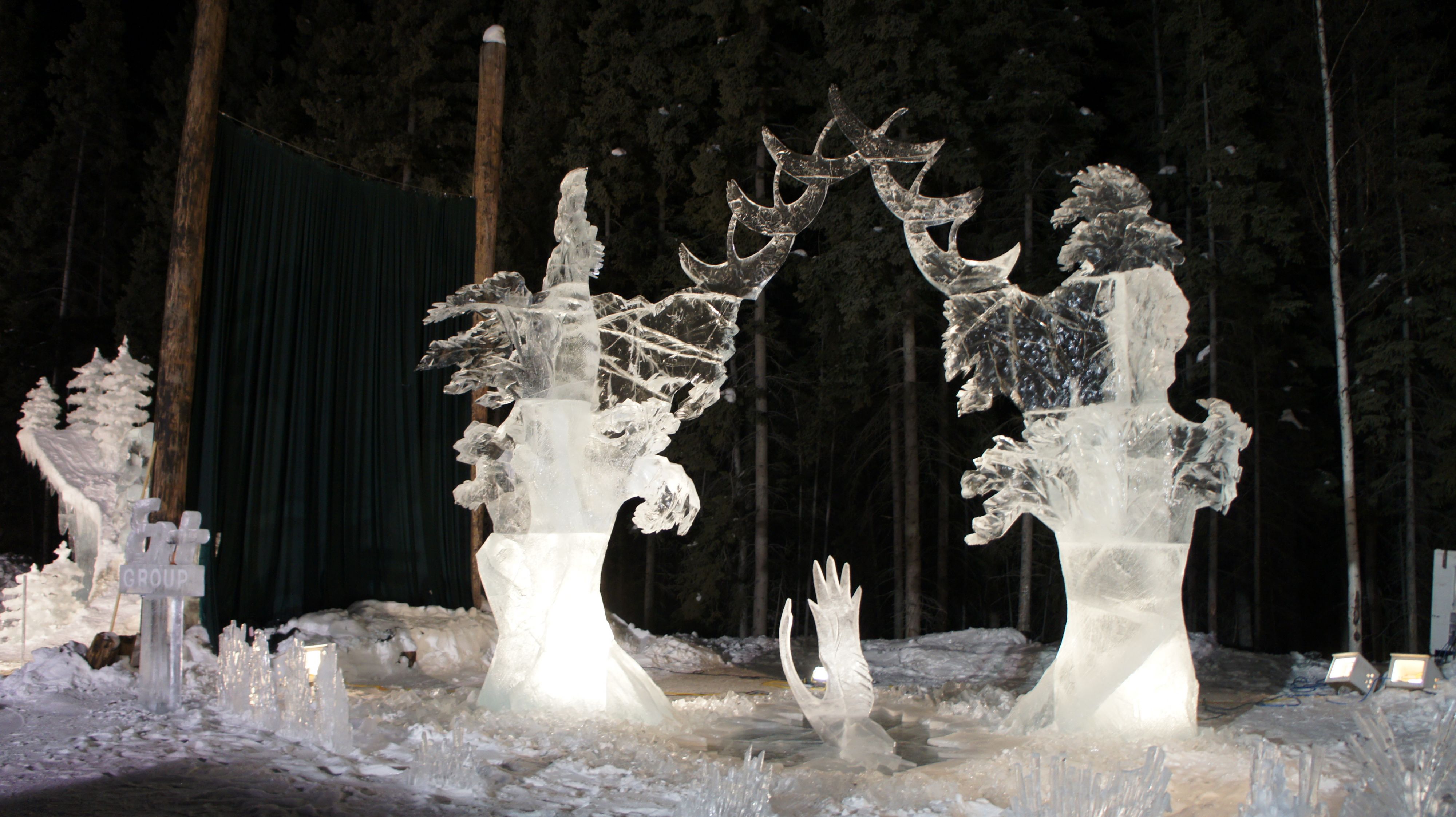"Мечта о небе". Работа российской команды на мировом чемпионате по ледовой скульптуре IceAlaska2013. 10 блоков озёрного льда по две с половиной тонны каждый, 6 дней работы, 4 скульптора.