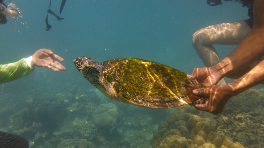 её никто не мучал, черепахи там ручные, погладили, угостили, пофотали и отпустили