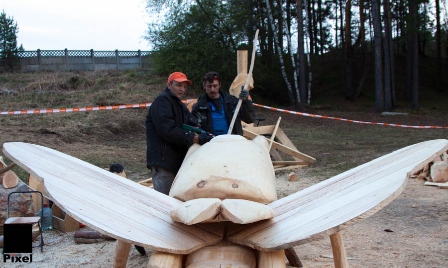 Максим Кудрявцев и Денис Павленко крепят первый усик к своей медведке.