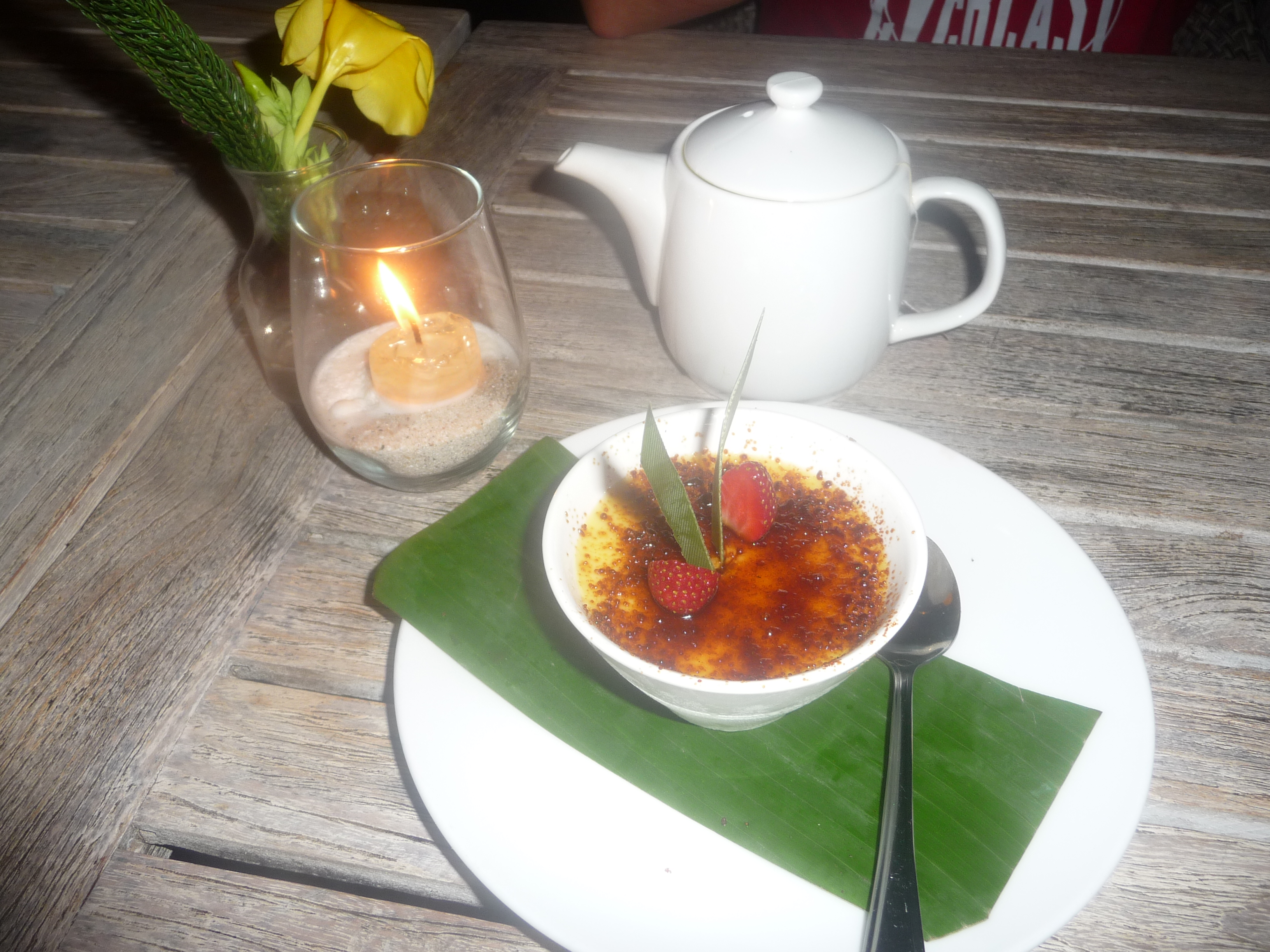 это крем брюле,нежнейшего и вкуснейшего десерта я ещё не пробовала,это было на острове,а в других ресторанах,потом сколько не спрашивала ни где не было,и там даже не знали,что это такое