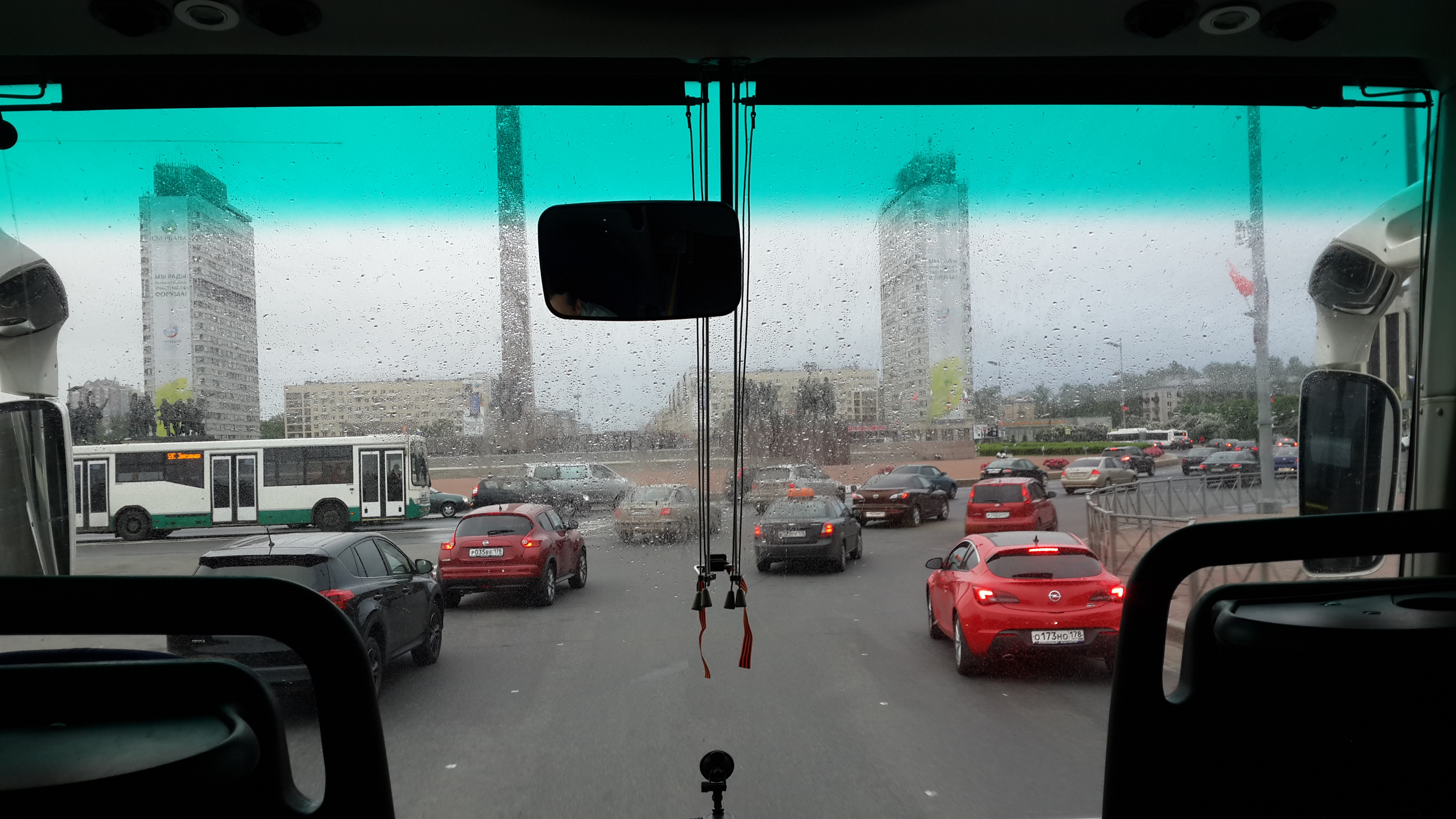 Юля в Питере. ))) Из Пулково въезжает в город. А у нас дубак - по утрам вчера и сегодня +6, днём +11 - 12. И дождик. Но ничего, к выходным тепло вернётся
