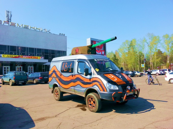 еще по Москве носились машины-"танки" (с картонными коробками и трубами сверху), машины-разукрашки и прочие декорации.