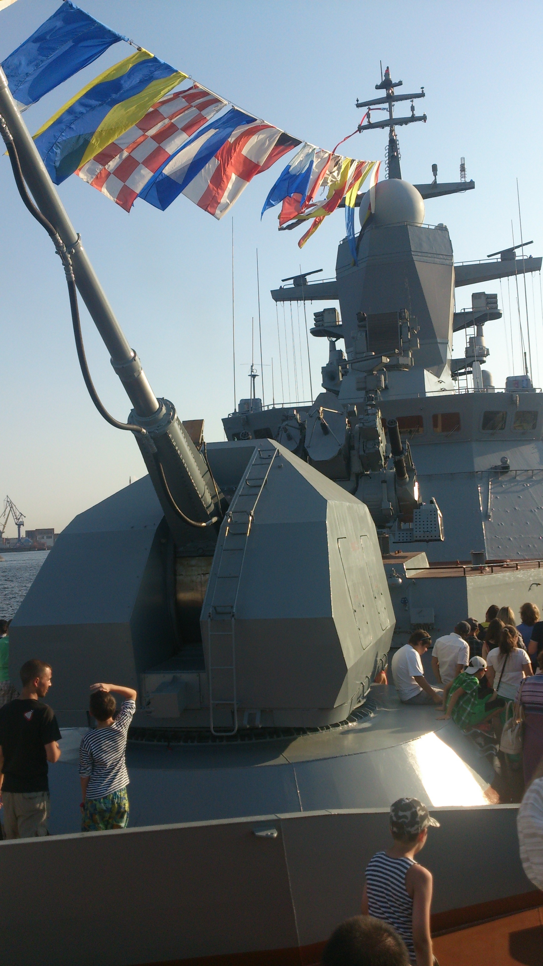 Особенно пацанам было интересно, и пушку излазили, и комплекс "Кортик-М" на заднем плане. )))