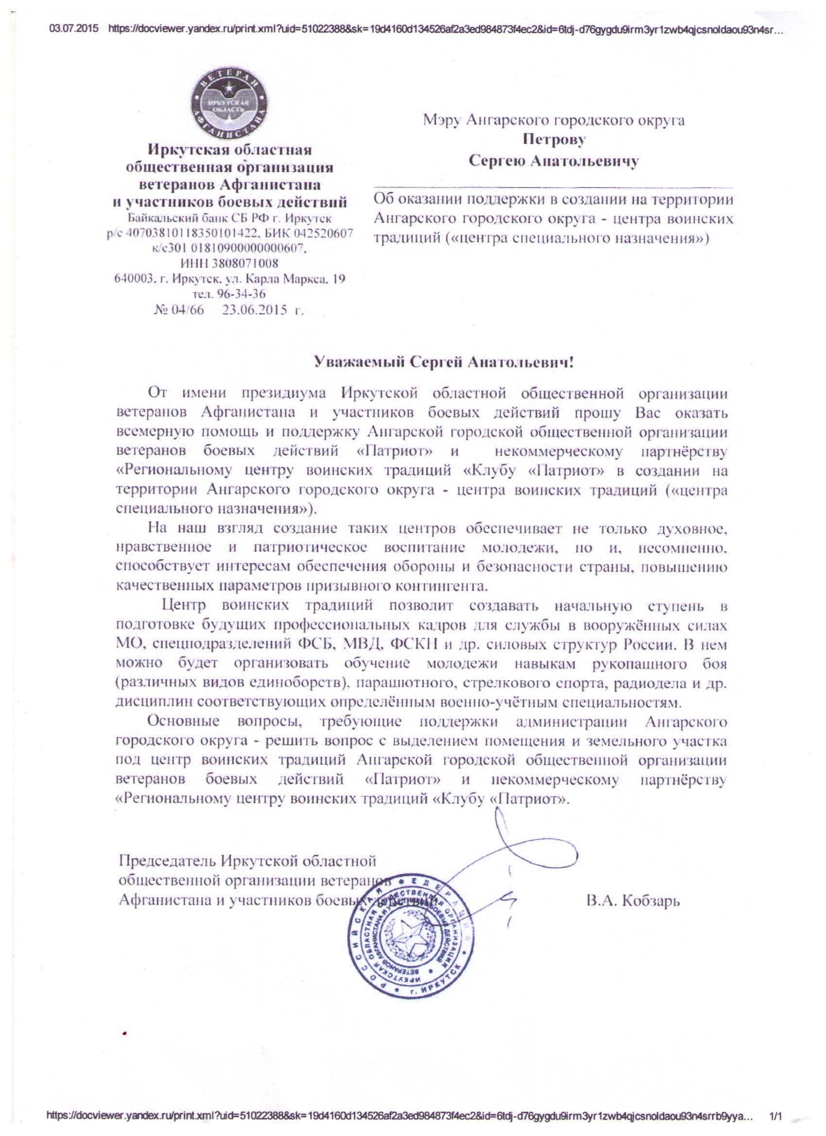 Письмо поддержки