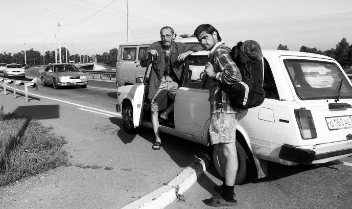 Лицо у мужика с рюкзаком очень интересное