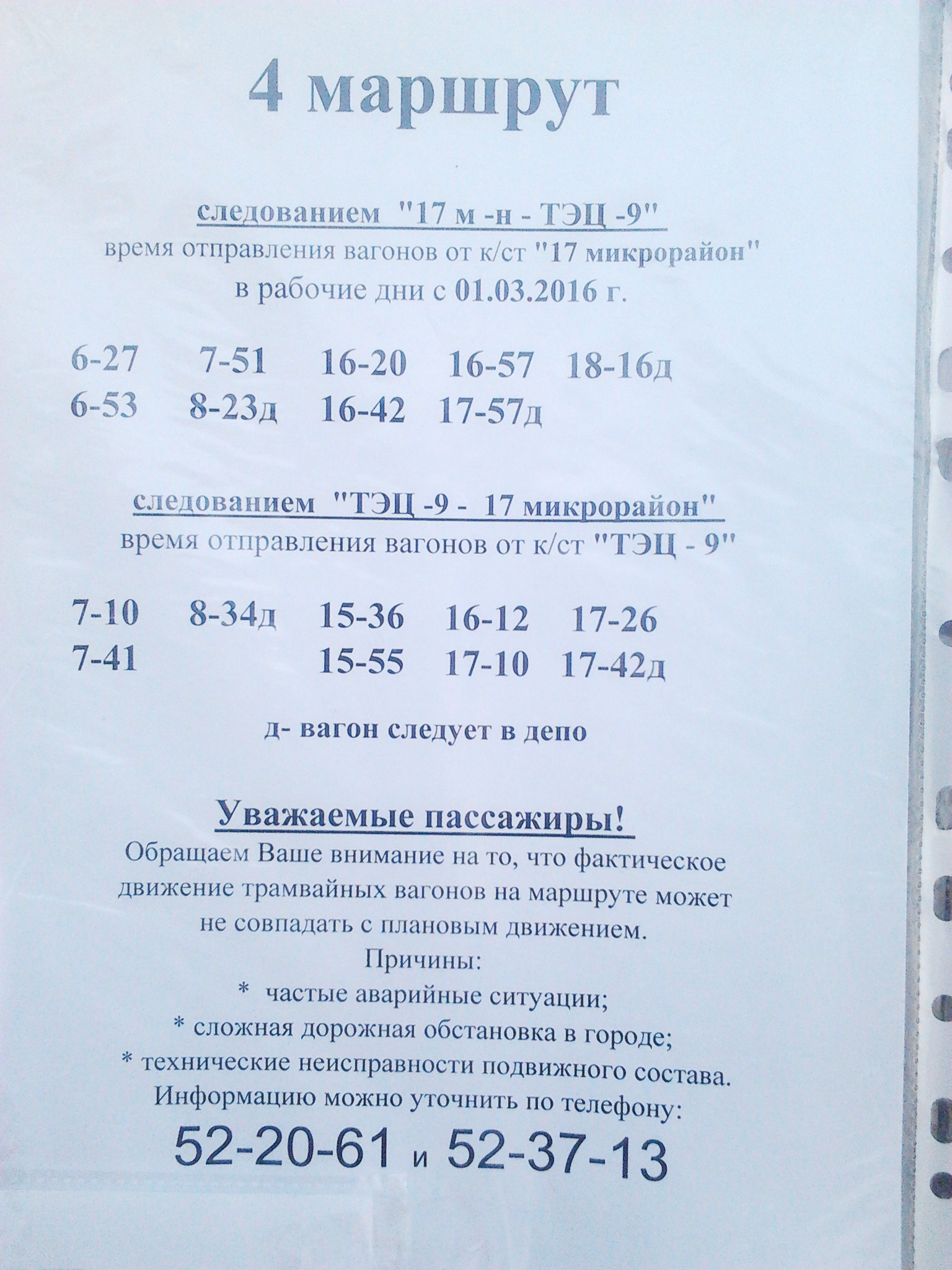 Расписание трамвая маршрутом номер 4 с 1го марта 2016)))