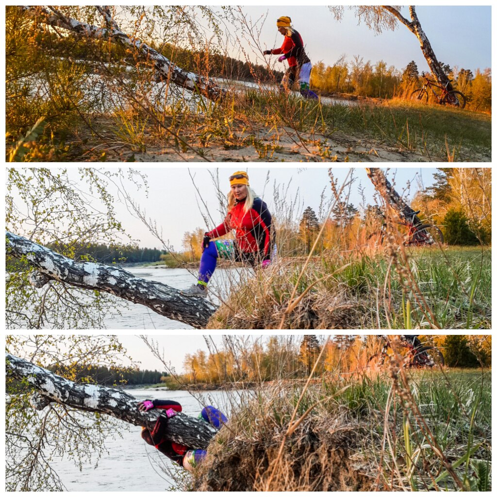 К закату Юля покатилась на Китой, внимать красивости. Едет, кайфует, вдруг видит - дерево над обрывом нависает! Вау!! Какую замечательную фотку я щас сделаю! - подумала Юля и поставила фотик на автоспуск. Ласточку на дереве хотела сделать