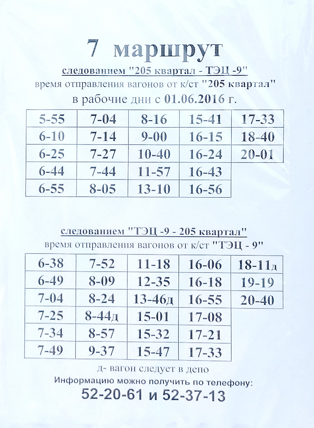 Расписание трамвая маршрутом номер 7 с 1го июня 2016 будни)))