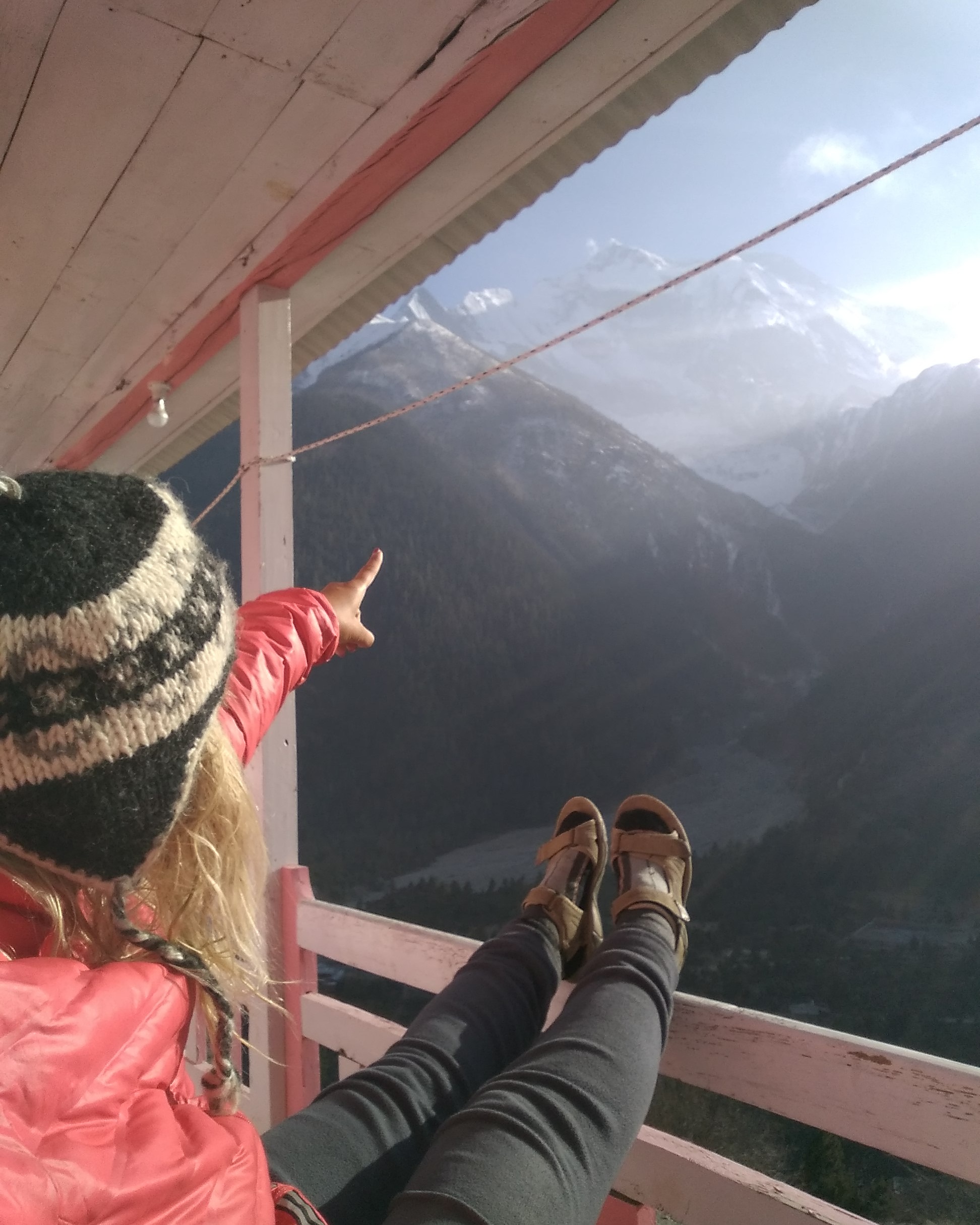 В шапочке гуанакской, Ноги сложыв на перила, Котострофа ахает: - Кокая Аннапурна длинноя!