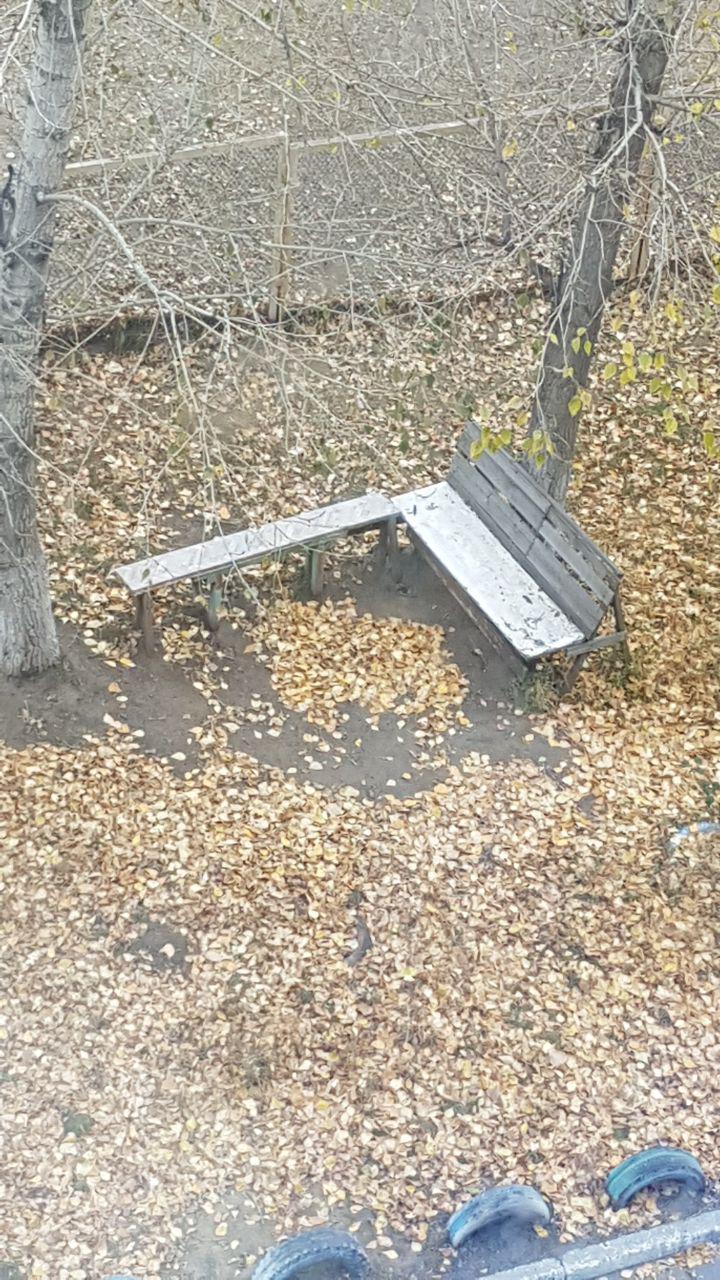 Это лавочка во дворе. Она не покрашена. Совсем!