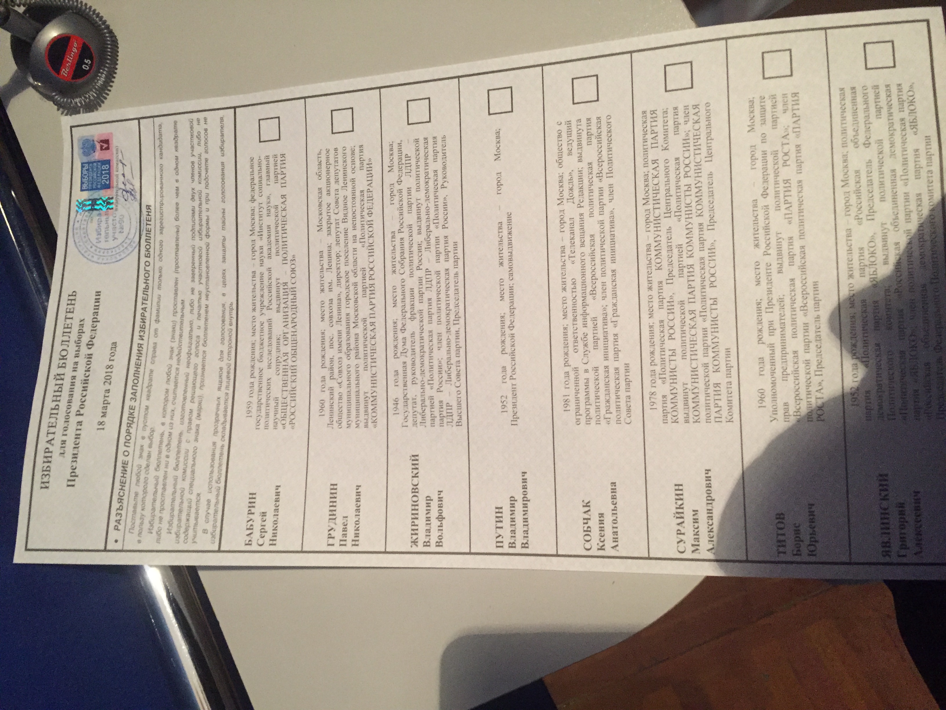 надо не метаться в догадках, а именно там поставить любой знак в квадратике напротив фамилии кандидата