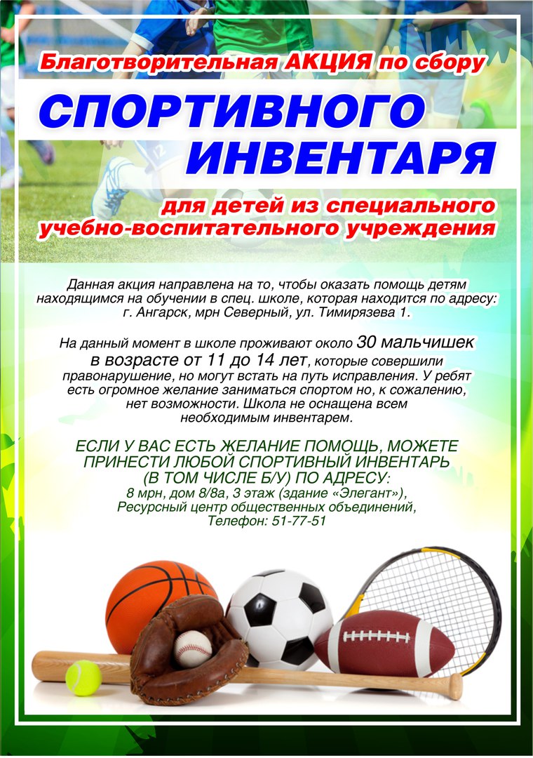 Благотворительная акция по сбору спортивного инвентаря