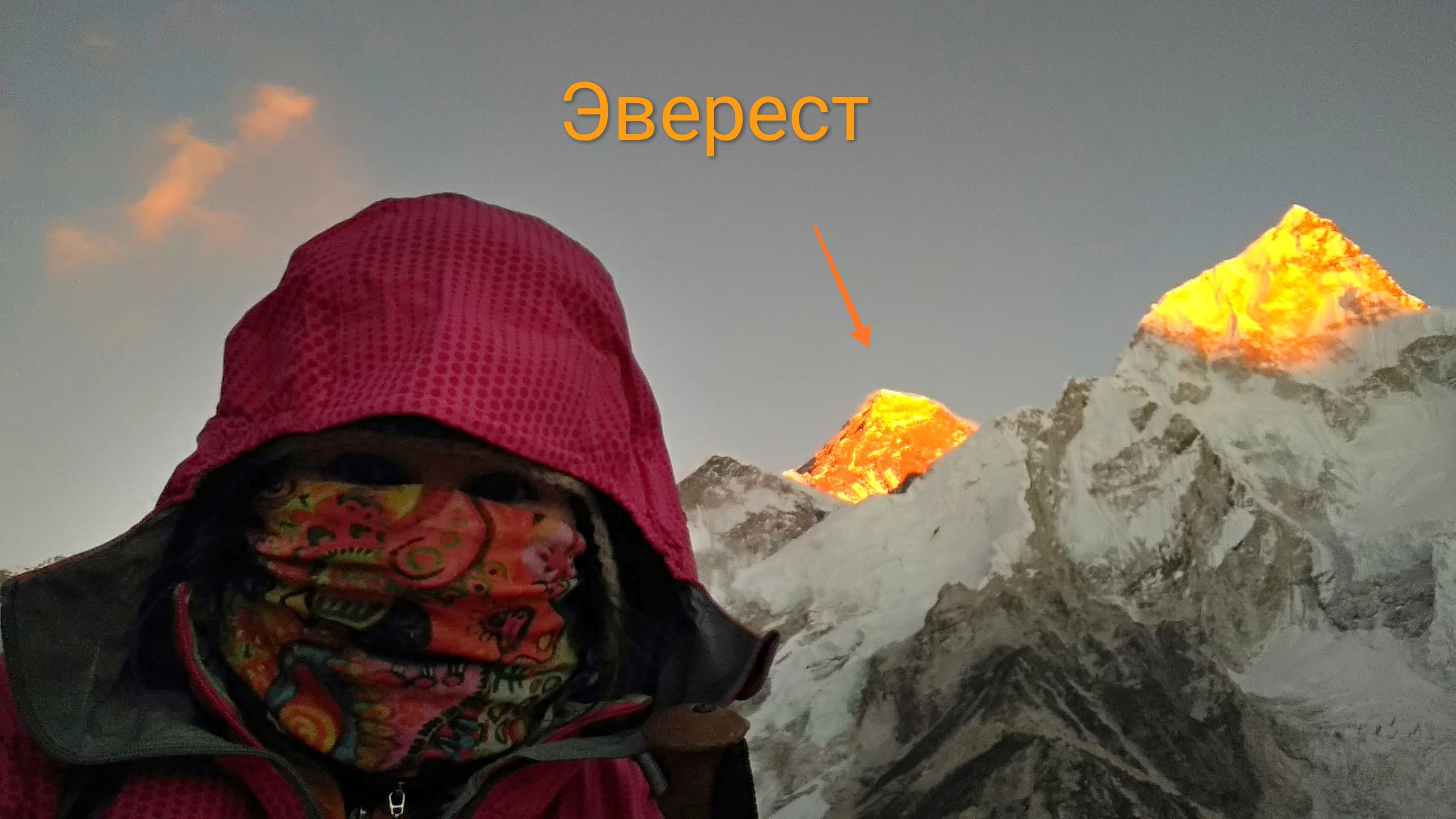 Я на фоне заката на Эвересте и Нупцзе. Было ооочень холодно и дул ледяной ветер, еле дождалась заката, едва не околев. .