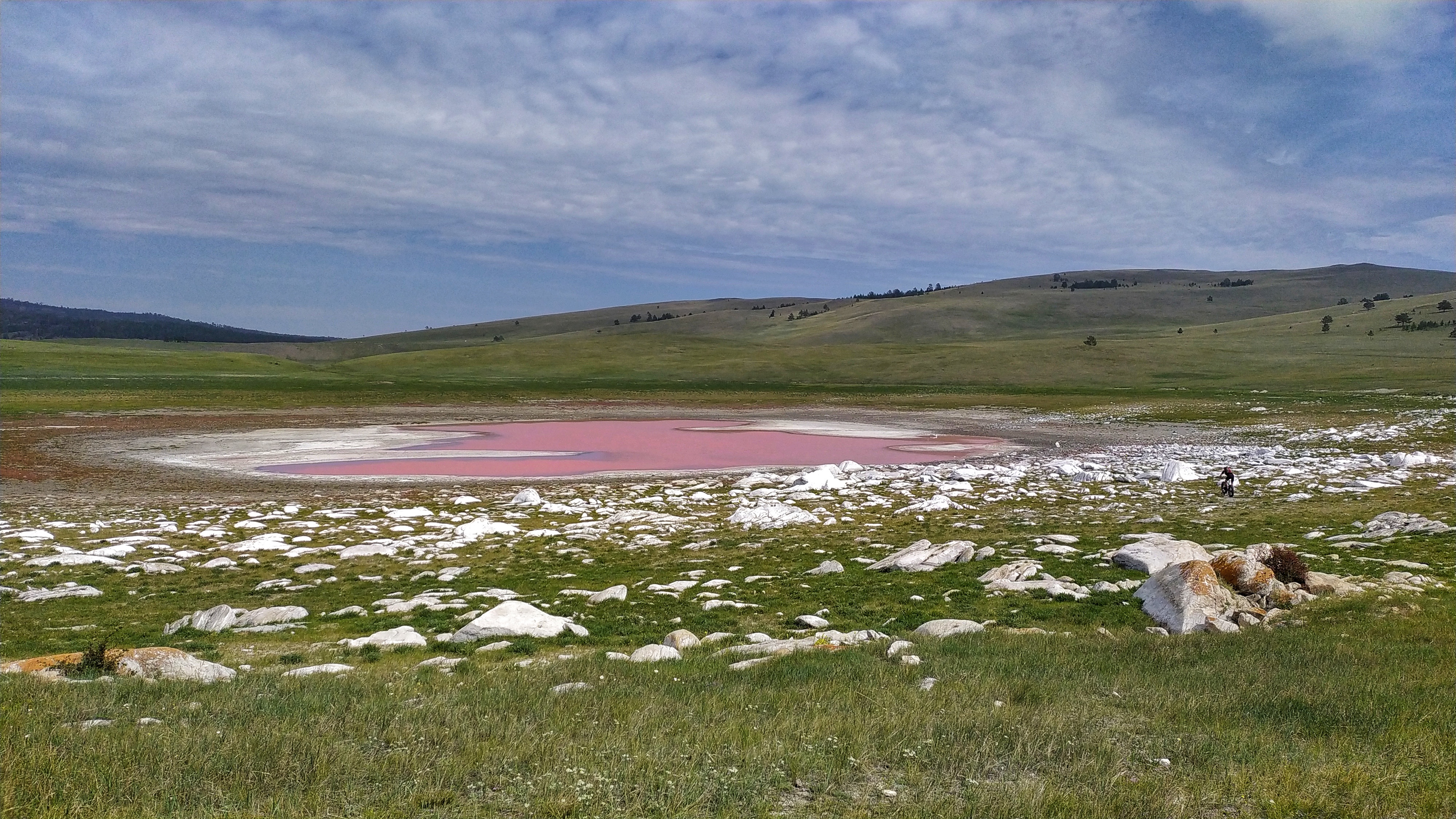 Правее этого озера есть какое то старое бурятское стойбище с их столбиком для цветных веревочек.