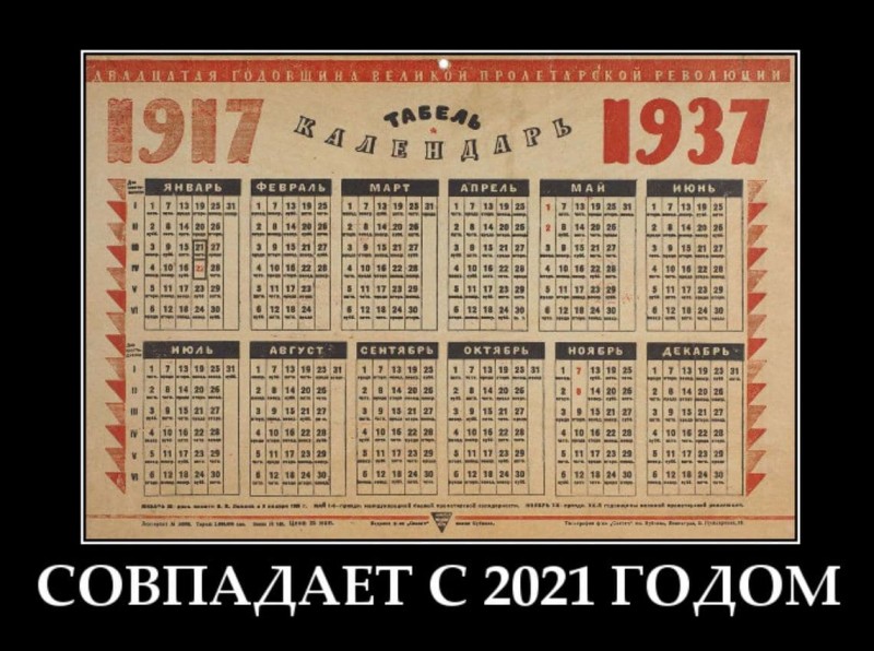 Не смог найти календарь 1937 года того времени. Видимо, у людей с этим годом были нехорошие ассоциации вот никто на память и не оставил.