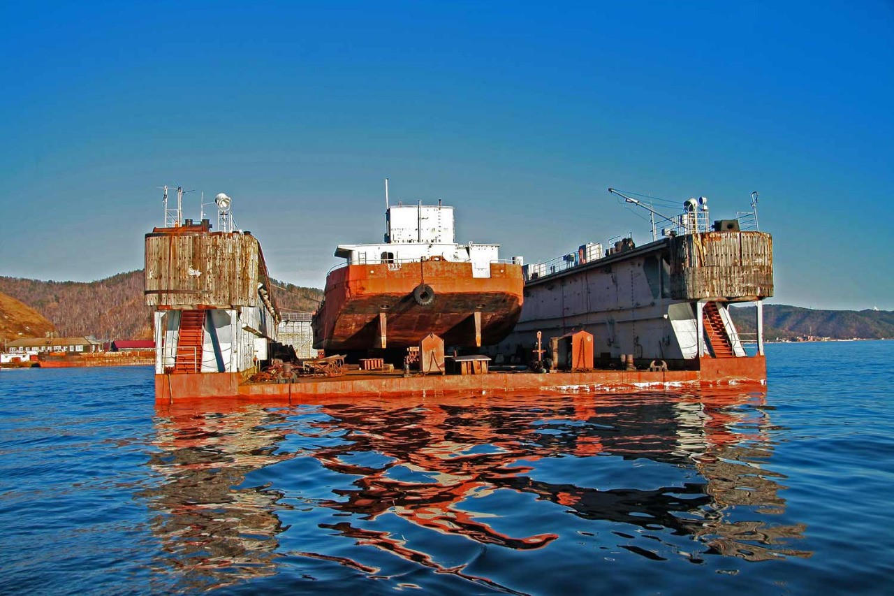 Как-то в безветрие, но при очень сильной волне, на лодочке пробирались с другом из Байкала в Ангару, чтобы там спокойно зачалиться. Мимо этого дока, разумеется, шли, так как с КБЖД возвращались. И тут выяснилась одна пренеприятнейшая вещь! Если до того приходилось лавировать между валами, накатывавшими, в общем-то, с одной стороны (и это было вполне себе терпимо, хотя и утомительно), то при проходе пары сотен метров вдоль этого дока я на румпеле вдоволь хлебанул адреналину: на волны, споро катившие из открытого Байкала, накладывались столь же бодрые их отражения от непоколебимой стены дока... Мы чувствовали себя щепочкой в мясорубке. Это было то, что сейчас модно называть "полный треш")))