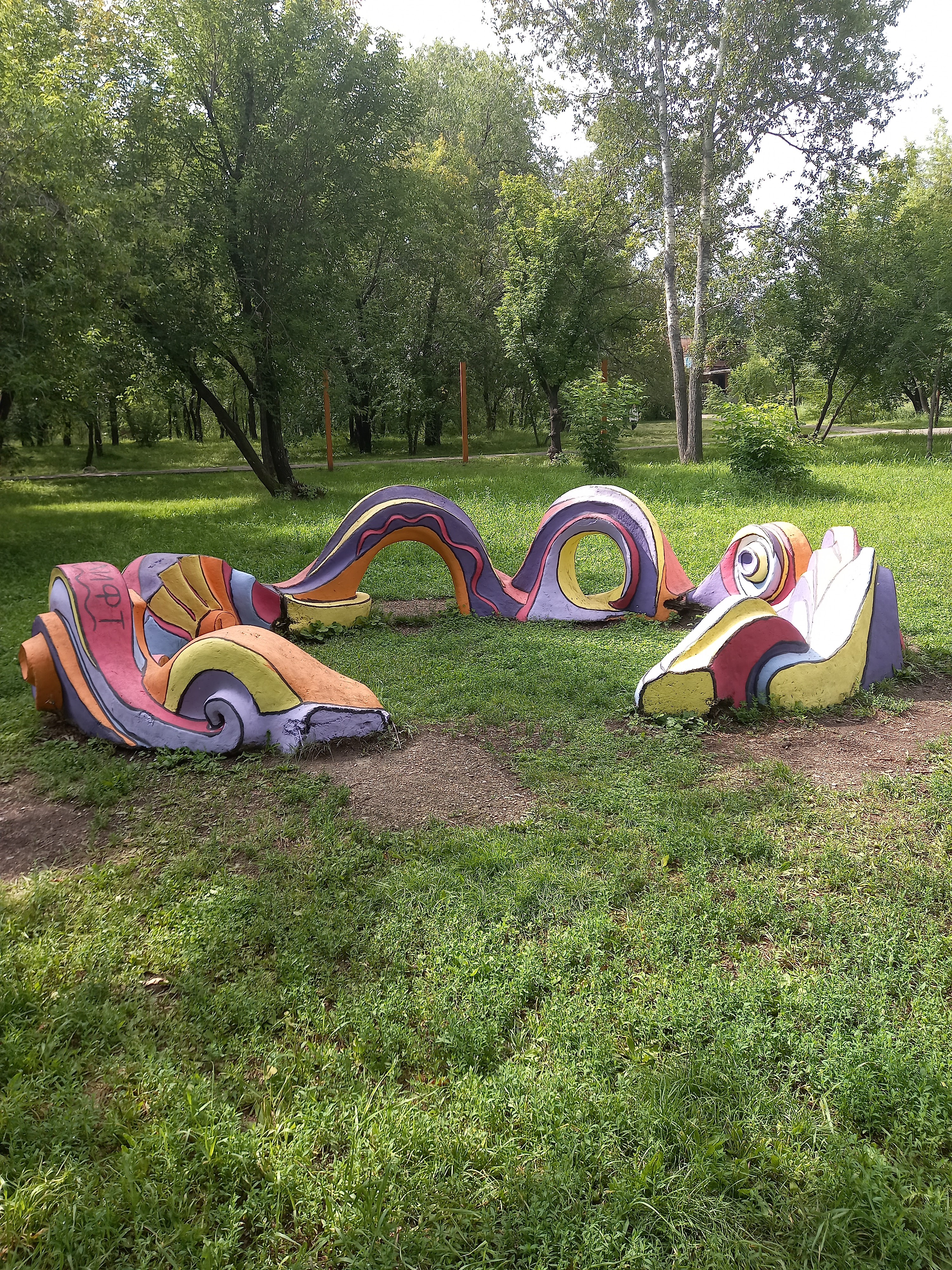 вот это волнистое - тело змея. Еще там у каждого из двух было по голове, которые изначально должны были стоять и возвышаться (правда, они все время лежали в траве). Если их увидеть, то сразу становилось понятно, что это такое.