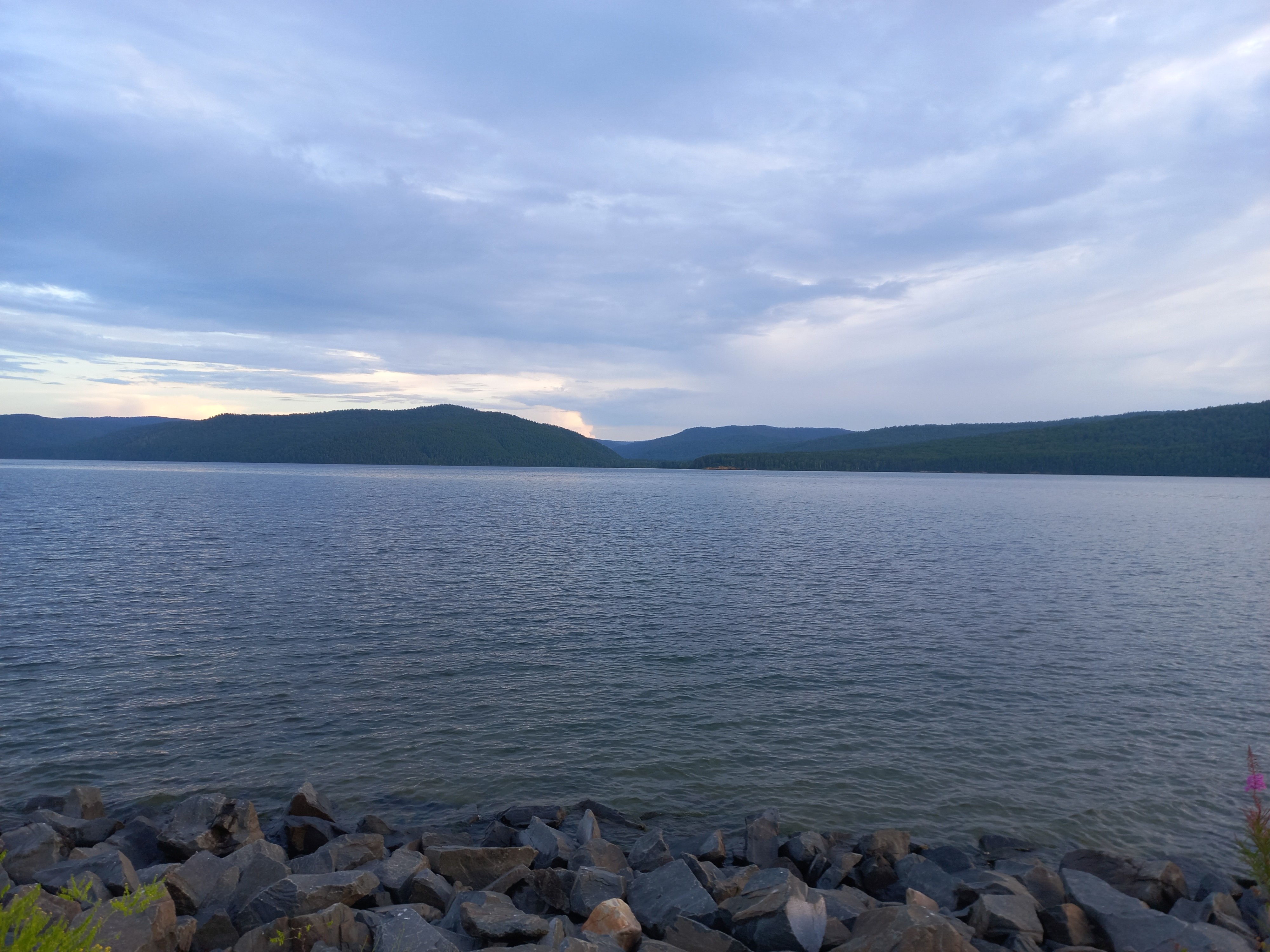 Мотя, вон там, недалеко от левого берега, на глубине 7-8 метров, затопленная Кругобайкалка.