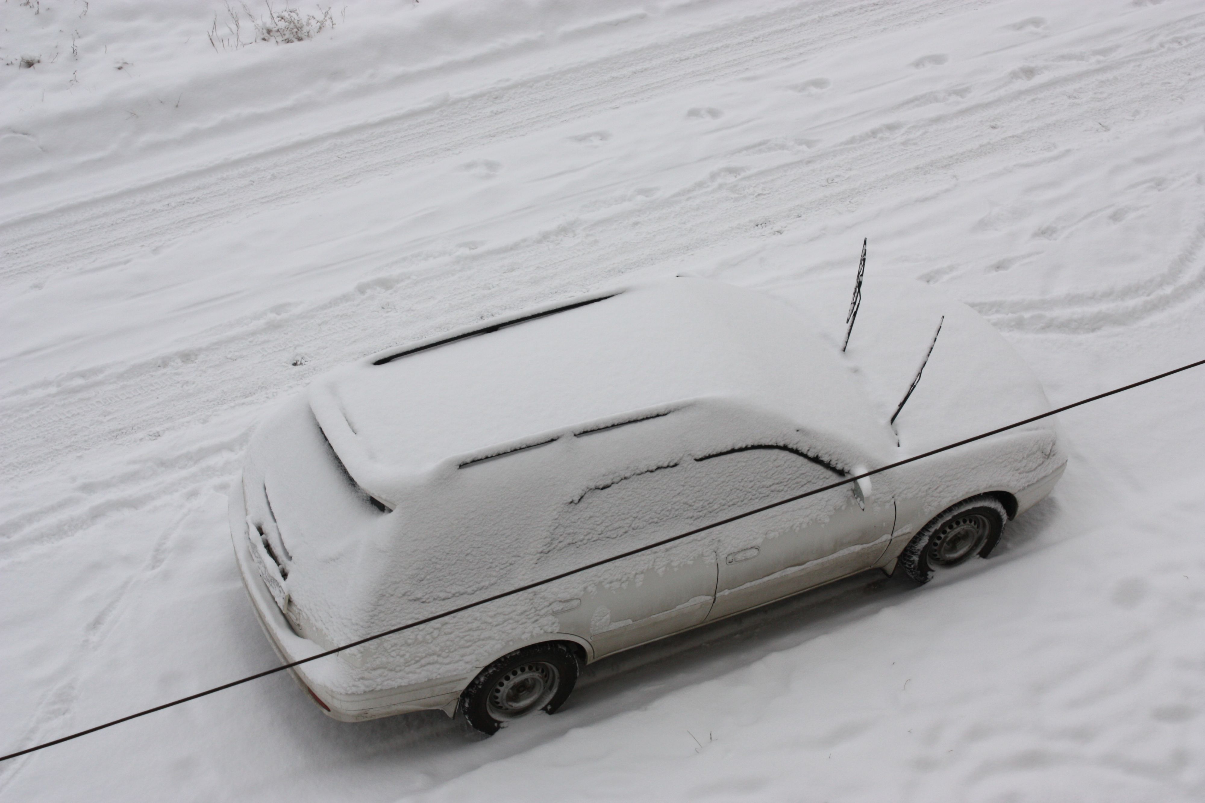 Интересное фото. Есть что-то... трогательно-печально-философское в этом засыпанном снегом авто... А рядом - следы человека.