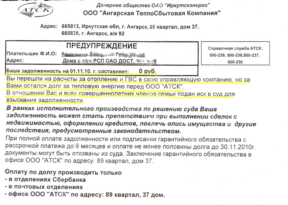 Предупреждение от АТСК