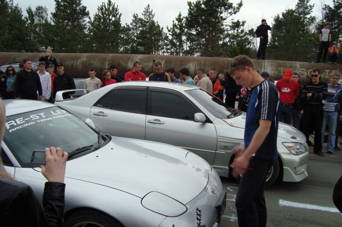 Походил-погулял, так сказать… Подумал: «А может на площадь Ленина рвануть?» И тут, откуда не возьмись, знакомый. Игрок команды «Неспящие в Аде» («Пункт назначения»). «Сегодня открытие сезона «легала» в Усолье, клуб «GT-Angarsk» едет. Ну, вроде как, «драг» обещают и «дрифт» должен быть». Мозг мой быстренько переваривает информацию… «Легал» - это мероприятие автолюбителей, согласованное с местными властями или не мешающее обычному движению автотранспорта…. Что-то в этом роде… «Драг» - это соревнование двух не в меру быстрых «тачек» по прямой, кто быстрей проедет 402 метра… Вроде так… «Дрифт» - зрелищные контролируемые заносы… Должно быть интересно… Вот тебе и первомай!