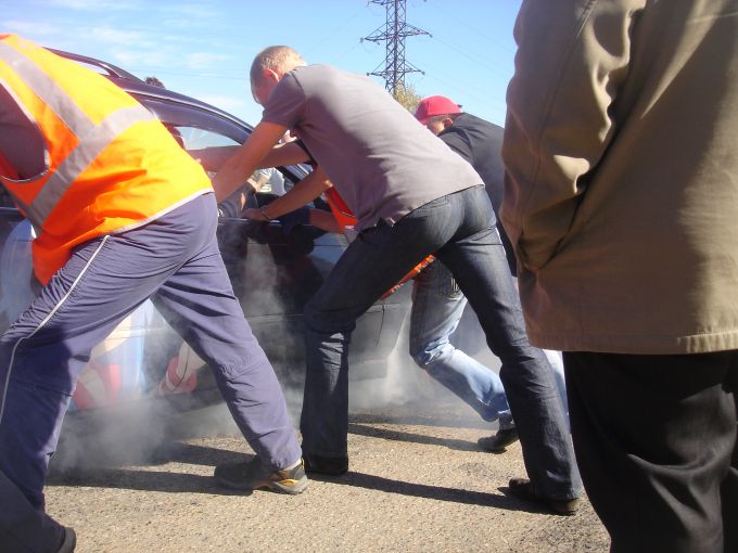 Для того чтоб провести дрифт пришлось всех участников привезти на площадку тех. осмотра в п. Майск. Это нам надо было собрать всех Иркутян и Усольчан, и привезти их туда одновременно. Там всех разнесли в пух и прах, понавыписывали штрафов потому что все машины не правильные, оказывается правильная машина для дрифта это ВАЗ 2107 – у нее идеальная развесовка 70/30, механика, задний привод, вот она бы прошла там тех. осмотр. Потом оказалось, что все это напрасно было. Потом УВД, где были строгие указание что и как. До этого три орг. комитета в Администрации. Финал, день дрифта до обеда не знаем будет ли он вообще, так как опять ГИБДД нас гонять начали. В прошлом году, еще хуже дали добро за пять минут до начала.