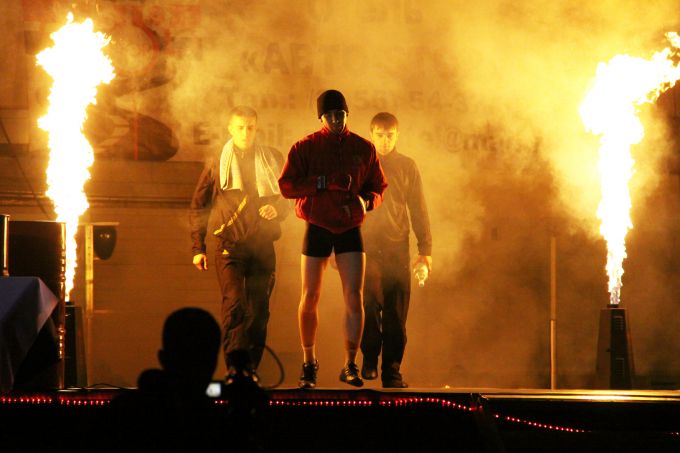 И действительно, кроме жестких контактных поединков, здесь было все: и захватывающие дух полеты воздушных акробатов, и зажигательное «Тюремное танго» из знаменитого мюзикла «Чикаго», и яркое файер-шоу - всего не перечислить. Конечно, эта увеселительная составляющая турнира слегка затянула мероприятие, в результате спортивное шоу продлилось аж три с половиной часа. Но это известная практика таких турниров, ведь нельзя «подавать» схватку, не заправив ее букетом из «специй»: тяжелая музыка, визитные карточки бойцов на огромных экранах, затяжное объявление участников поединка. Даже сами гладиаторы выходили медленно и нерасторопно, освещаемые яркими вспышками прожекторов и языков пламени, эффектно оттенявших фигуры храбрых. Выглядели они абсолютно невозмутимо и, казалось, не торопились начать бой…