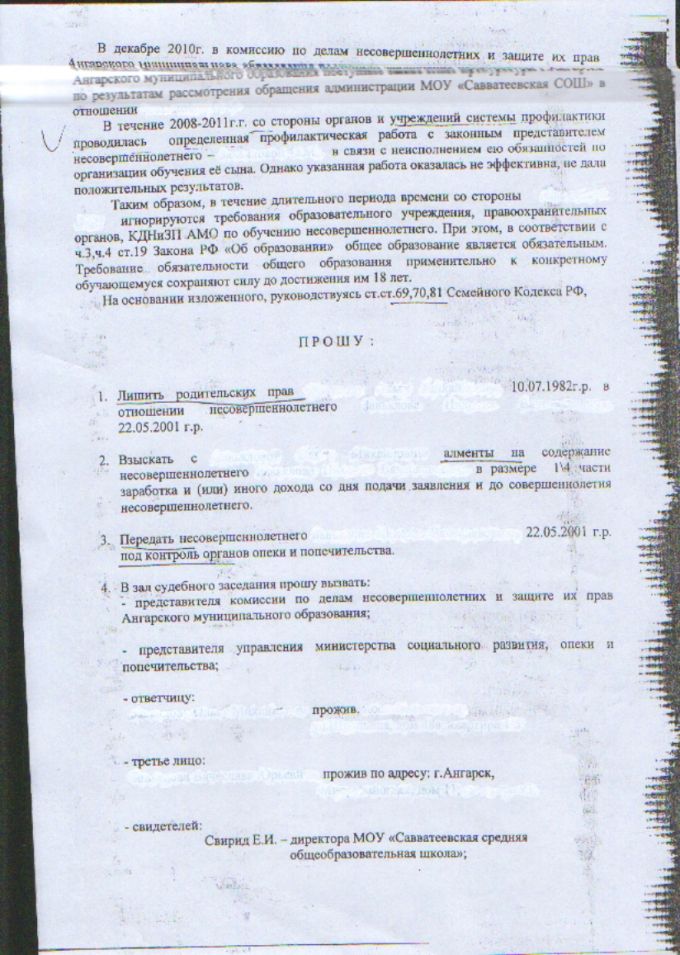 Вряд ли Ангарский городской суд в своей практике когда-нибудь рассматривал более позорный иск, чем этот. Не знаю какова роль прокуратуры в этом процессе. Мне жаль, что комиссия по делам несовершеннолетних поставила себя в такое положение. Мне не раз приходилось взаимодействовать с этой комиссией в своей предыдущей профессиональной деятельности и ранее у комиссии всегда на первом месте были интересы детей, в это раз комиссия выступила против ребенка и его семьи.