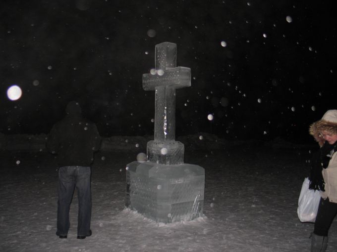 После полуночи десятки и сотни ангарчан потянулись к традиционному для нашего города месту купания - к иордани на реке Китой за 95 кварталом. Возле самой проруби находятся одновременно около 100 жителей города. Ещё человек 50 - это сотрудники полиции, ГИБДД и солдаты из воинской части: все они следят за порядком. Особого ажиотажа и давки в проруби не наблюдается, в среднем за минуту окунаются 3-4 человека. На улице очень морозно, но все выходящие из воды, говорят только одно "Хорошо!"