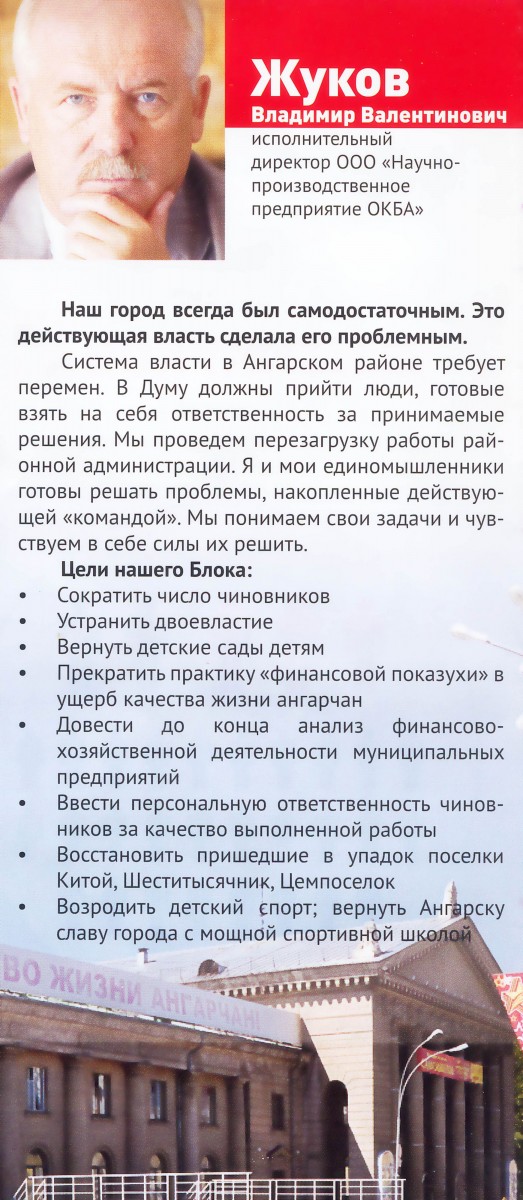 Вы знаете, 19 октября 2010 года на заседании думы был выбран мэр ангарского района – Владимир Жуков. Уже 29 октября было подписано постановление о предоставлении земельного участка в размере 12 500 кв.м. своему сыну, ныне депутату Павлу Жукову. Для производственных или каких-то других нужд – это Думе неизвестно.