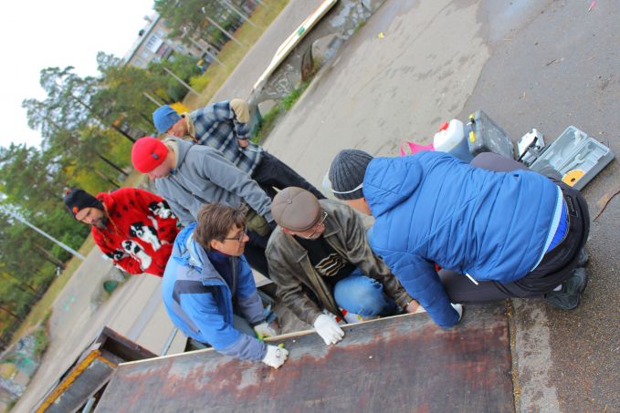 И вот, благодаря усилиям волонтеров, простых ангарчан, пришедших поддержать нас не словом а делом, мы это сделали! Как мы и обещали, работа нашлась всем: кто-то разбирал остатки настила горки, кто-то выгребал мусор, кто-то срезал старые болты и опасные металлические конструкции, а кто-то уже размечал безвозмездно предоставленные компанией "Стройкомплекс" новенькие листы 12 мм фанеры.