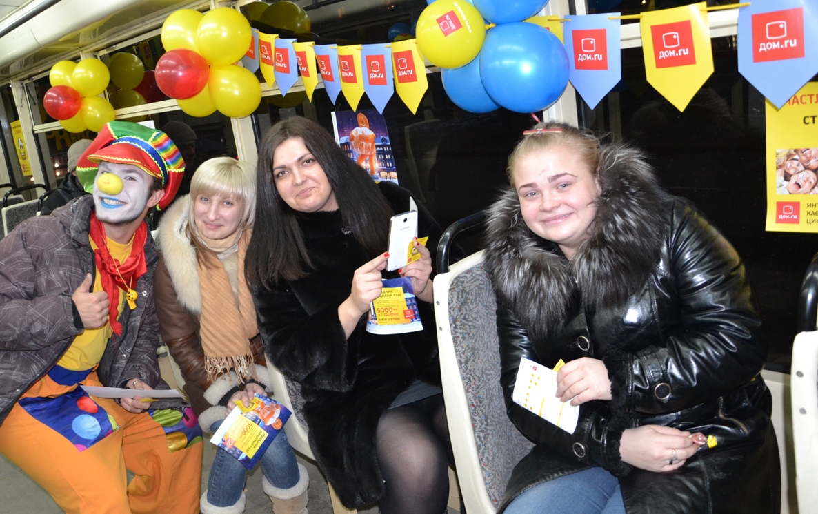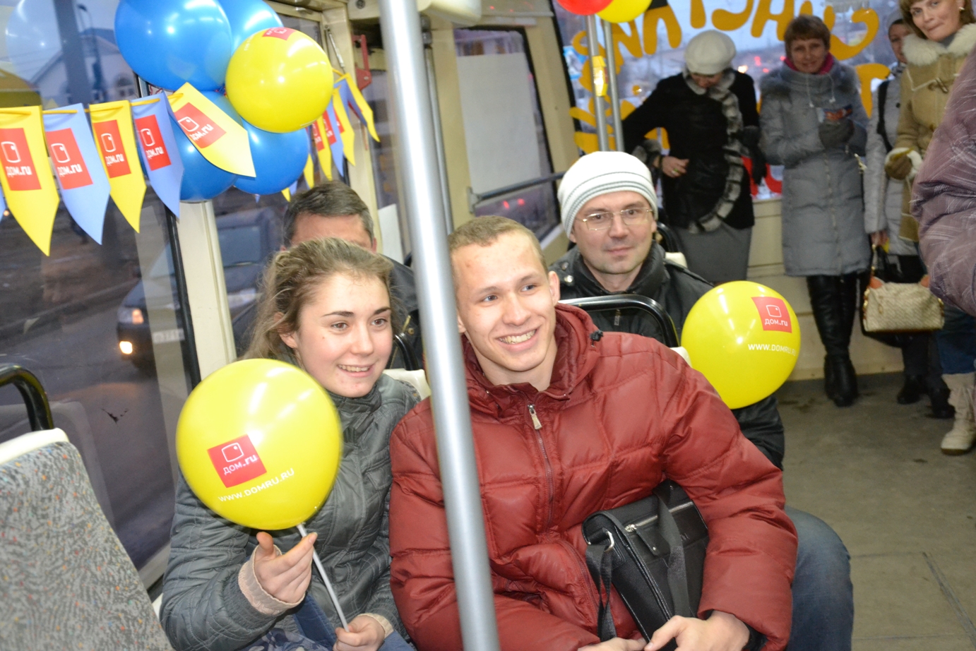 В необычном транспорте – «Счастливом трамвае Дом.ru» проезд стоил всего одну улыбку. Вагон был украшен яркими шарами, развлекательная программа от «Дом.ru» и веселый клоун создали отличное настроение у всех, кому посчастливилось прокатиться в необычном трамвае. Пассажиры улыбались, смеялись, и даже пели песни.