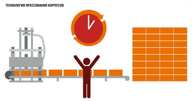 Технология прессования корпусов батарей позволяет сократить многодневный цикл до одного часа, а значит, в несколько раз ускоряет процесс изготовления изделий. Для изготовления корпуса используется экологически чистая формовочная масса на основе мела, целлюлозы и крахмала.